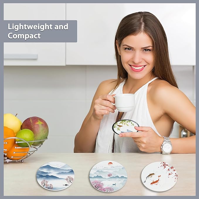 - 【Coaster with Metal Holder Set】The set includes 6 round ceramic coasters and metal coaster holder.