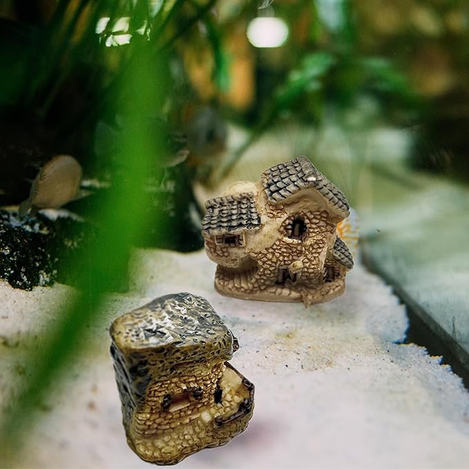 - Material & Features:Crafted from durable resin, these miniature village hut figurines boast remarkable detailing and vibrant colors. Their small size makes them perfect for terrariums, fish tanks, or creating enchanting miniature villages.