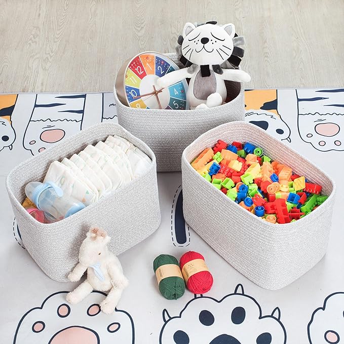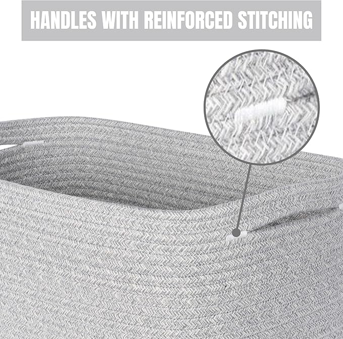 - Handcrafted & No Sharp Edges - Handmade from premium materials, our baskets are soft to the touch, yet sturdy enough to hold its shape. The workmanship ensures there are no sharp or hard edges to scratch furniture. Use them with complete peace of mind in recreation room, playroom, pet toy room, living room, bedroom, nursery room, bathroom, laundry room, mudroom, pantry, arts & crafts room, home office or even garage.