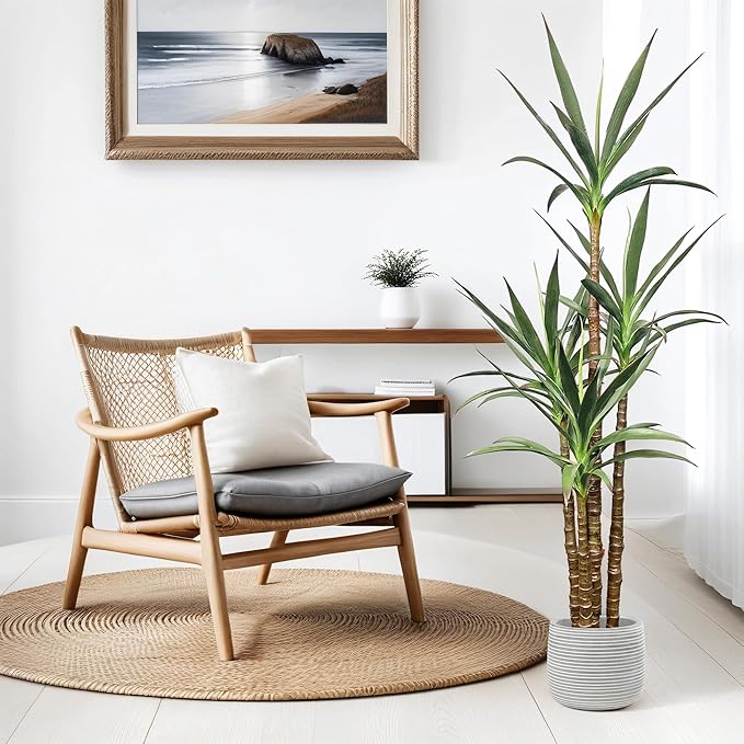 - 【Realistic Appearance】Experience the remarkable lifelike appearance of our artificial agave trees. Every detail, from the leaves to the main trunk, color, and texture, has been meticulously crafted to mirror the natural charm of agave trees. With 4 robust main stems, it radiates a lush and full-bodied aesthetic, delivering a more opulent visual impact compared to alternatives with fewer stems. Note: comes with a basic black pot, you may place your own flower pot.