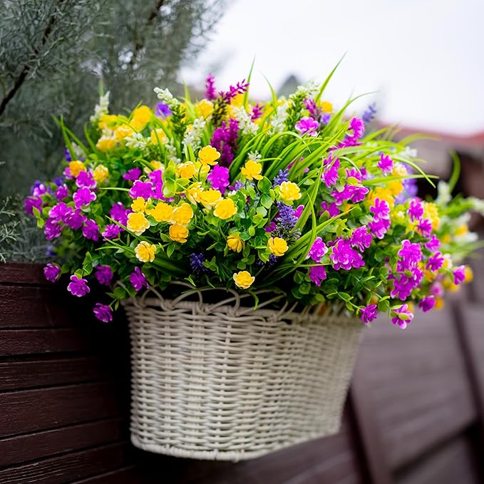 - 🌱【UV Resistant】- Artificial flowers for outdoors are UV resistant and never fade, can be put outside, front porch, back deck, garden, veranda, balcony, patio, reservation, hotels and restaurants where the hot weather kills many fresh flowers.
