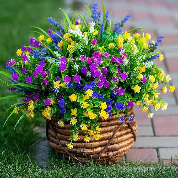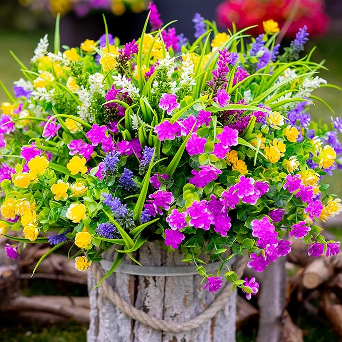 Artificial Flowers Outdoor Fake Plants - 12 Bundles UV Resistant Shrubs No Fade Faux Plastic Greenery Home Garden Porch Patio Decoration Indoor (1, Multi-12pcs)