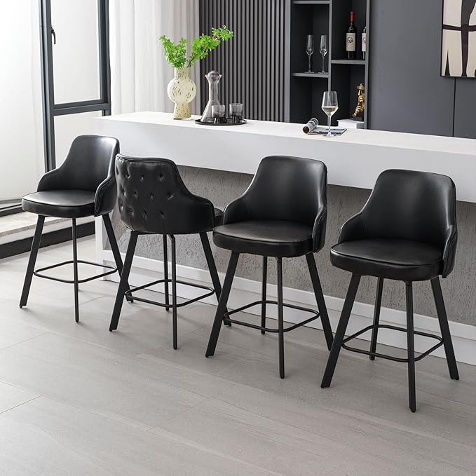 Bar Stools Set of 4, 26" Swivel Counter Height Bar Stools with High Back, Faux Leather Kitchen Barstools Counter Height for Kitchen Island (Black, 4PCS 26" Counter Stools)