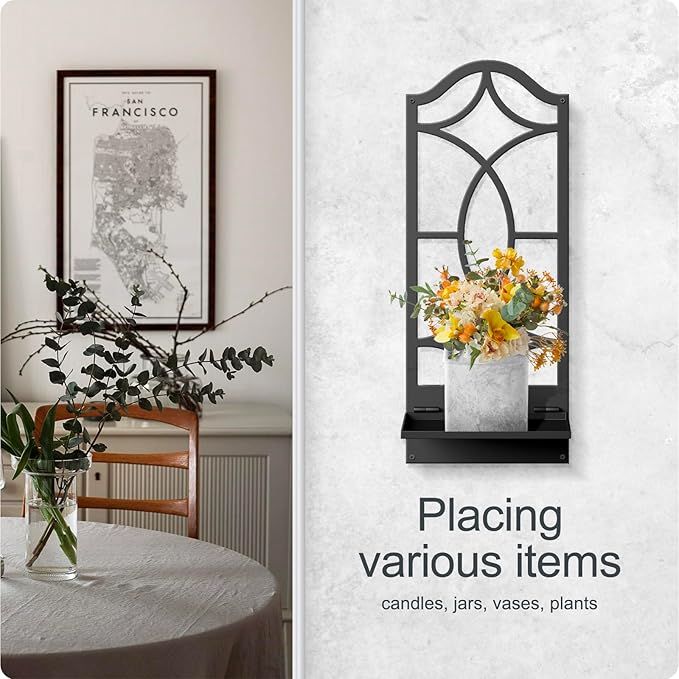- Unique Decor: Open your artistic talents to match multiple rustic ornaments with these candle holders. with candles, jars, vases, small plants, or other decorative pieces standing on the sconces, they would be unique farmhouse wall decors for your home.