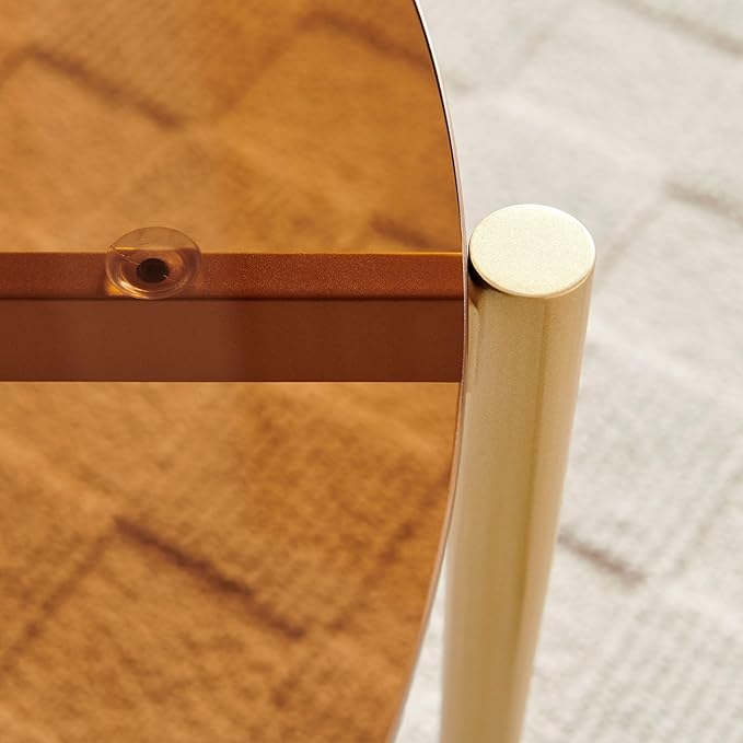 - 【Material Quality】Crafted with precision, the table features a round tempered glass top that not only enhances durability but also ensures safety. The gold metal frame complements the glass surface, offering a sturdy and stable structure.