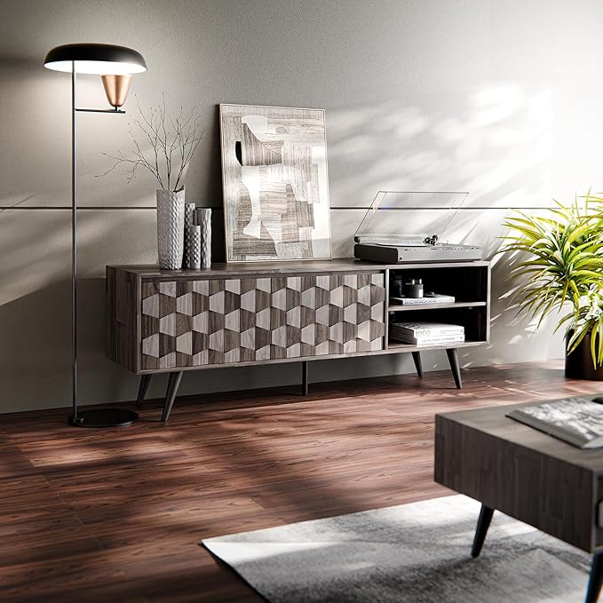 - Elegant Geometric Design: The intricate geometric patterns on the doors of our entertainment center are a testament to meticulous craftsmanship, adding a modern, artistic flair to any living space.