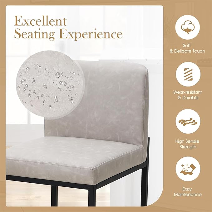 - 【Water & Stain Resistant】: With high-quality PU leather, water will not penetrate the sponge, will only stay on the surface. The water resistant feature made the barstools quite easy to care. Pu leather is more comfortable durable and breaths better than real leather and soft to the touch. Wipe with duster cloth in every day use in your dining room