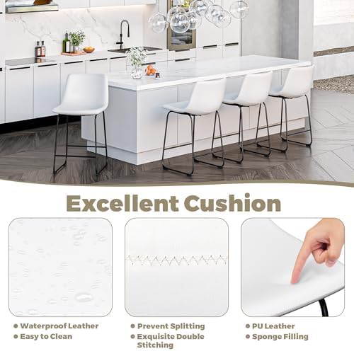 Bar Stools Set of 4, 30inch Bar Height Bar Stools with Back, Modern Faux Leather Bar Stools with Metal Legs and Footrest, Urban Armless Bar Chairs for Kitchens Island (White)