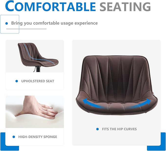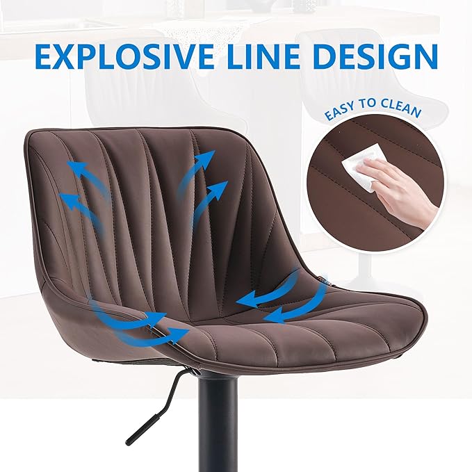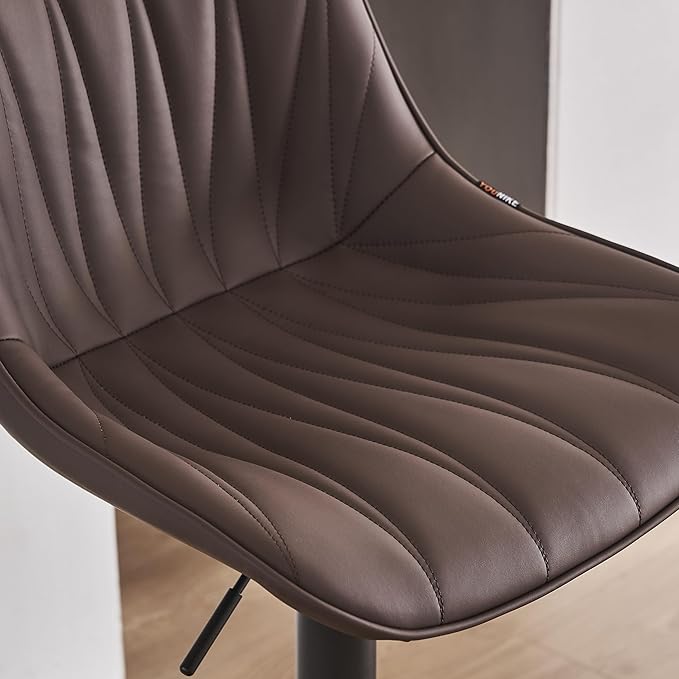 YOUNIKE Bar Stools Set of 2, Faux Leather Padded Bar Stool Counter Height Swivel Bar Chairs, Adjustable Barstools with Back for Kitchen Island, Modern Tall Bar Stools with 300LBS Support, Brown