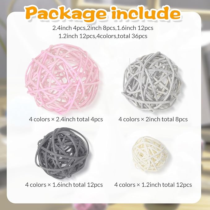 - Package includes: you will get 36 pieces of wicker rattan balls in several colors, enough in quantity and rich in colors and you can share them with your friends