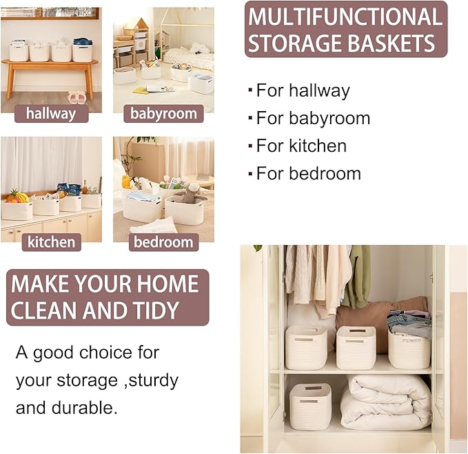 - 100% Cotton Rope Storage Baskets:OIAHOMY soft woven storage baskets are made of high-quality natural cotton, chemical free and safe for kids and pets. It will not scratch your furniture and floor, durable and firm