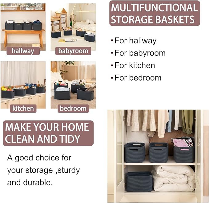 - 100% Cotton Rope Storage Baskets:OIAHOMY soft woven storage baskets are made of high-quality natural cotton, chemical free and safe for kids and pets. It will not scratch your furniture and floor, durable and firm