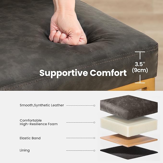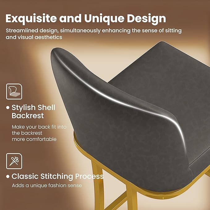 - Durability Bar Stools: Crafted with high-quality PU leather, is known for its durability and Animal-friendly. It is resistant to wear and tear, less prone to cracking or peeling compared to genuine leather. The cushions material has a nice pattern and texture to them and are surprisingly rather comfortable to the bum and back. It can be wiped clean with a damp cloth, easy to clean