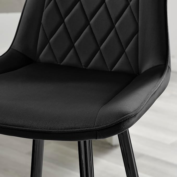 - STYLISH MODERN BAR CHAIR DESIGN: A timeless yet modern design featuring an ergonomic curved seat that will support you and a square chair back with rounded corners and diamond pattern stitching. Sat on tapered black metal legs and with a foot rest bar for additional comfort.