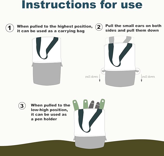 - UniqueTool Bag:Features a distinctive two-section extension function, saving storage space and portable. Pull down the outer layer as a tool holder for easy use; pull up to storage the tools or lift to anywhere you want.