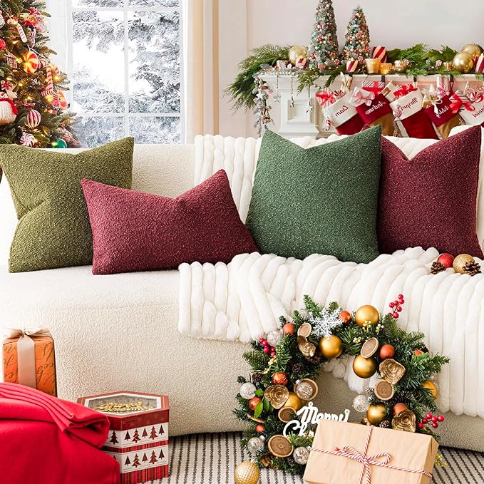 Foindtower Set of 2, Decorative Textured Boucle Throw Pillow Covers Accent Solid Pillow Cases Neutral Cozy Couch Cushion Case for Chair Sofa Bedroom Living Room Home Decor 24 x 24 Inch Hunter Green