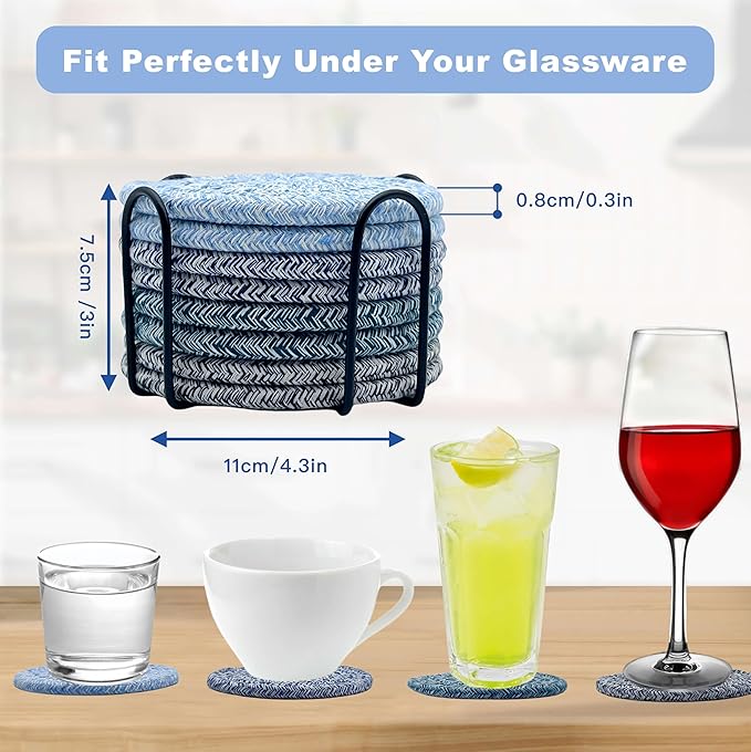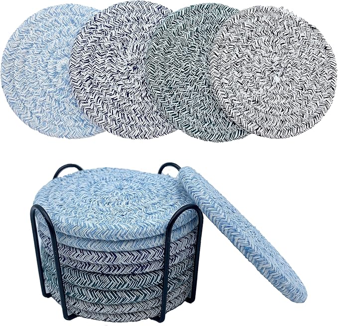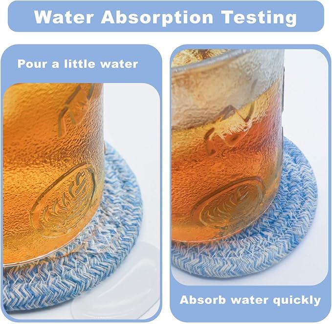 - Why Choose Us?: Coasters for coffee table are Handmade 100% cotton, which has more absorbent than silicone and ceramic coasters