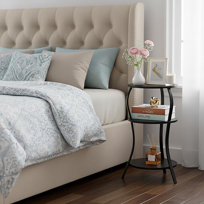 - 【MULTIFUNCTIONAL 3-TIER TABLE】: The height of the end table is designed to match most sofas and beds, making it an ideal choice as a sofa side table, bedside table, nightstand, end table, or accent table. It is suitable for use in a bedroom, living room, office, small spaces, or any other area. The bedside table features an attractive design that combines industrial, contemporary, and retro styles, making the nightstand compatible with any home decor and furniture.