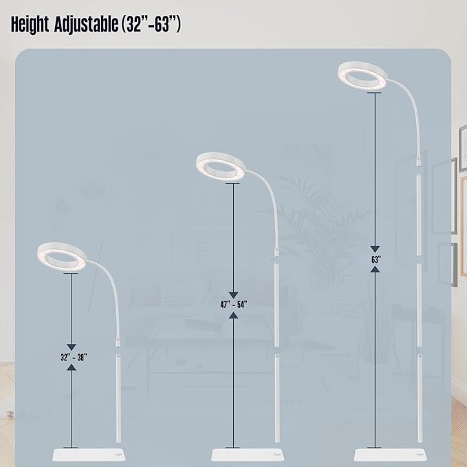 - 【Versatile Height Adjustment】Easily adjust the GLOWRIUM grow lamp to heights of 32, 47, or 63 inches with its detachable three-section design. The 360-degree rotating lamp head ensures your plants receive uniform light for optimal growth, from seedlings to full-sized plants.