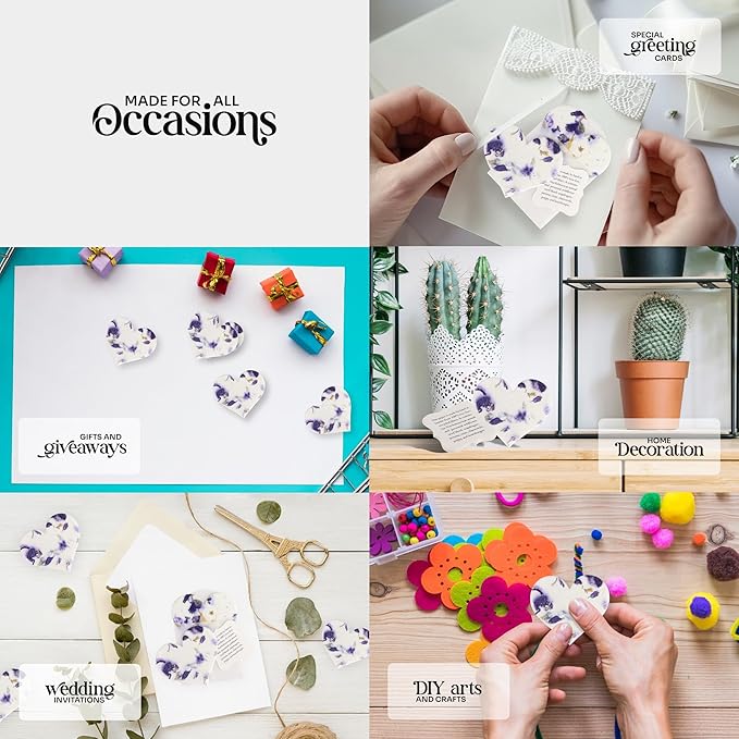 - Wildflower Seeds Included: This set includes handmade seed paper filled with wildflower seeds and petals, ready to plant and enjoy.