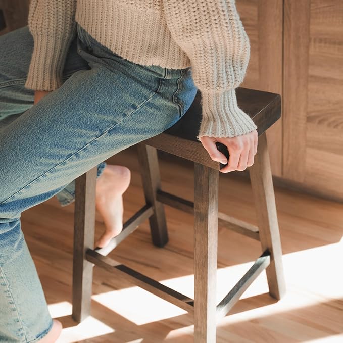 - ANTIQUED BLACK WOOD FINISH: With a hand-brushed wood finish in a rich, antiqued black stain, these wooden counter stools offer a dark and moody hue you’ll adore and exactly the kind of drama your dining space has been seeking.