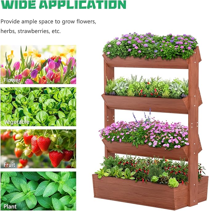 DoCred Vertical Wooden Raised Garden Bed, 4 Tier Garden Planters Freestanding Wood Plant Stand Flower Rack Wooden Planter Box for Plants Herbs Flowers Vegetables Outdoor Indoor Gardening