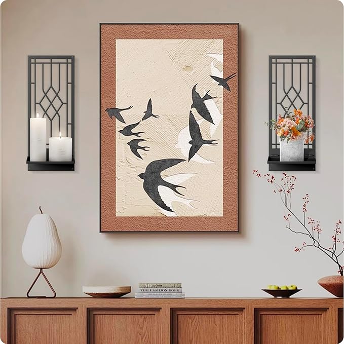 - Unique Decor: Open your artistic talents to match multiple rustic ornaments with these candle holders. with candles, jars, vases, small plants, or other decorative pieces standing on the sconces, they would be unique farmhouse wall decors for your home.