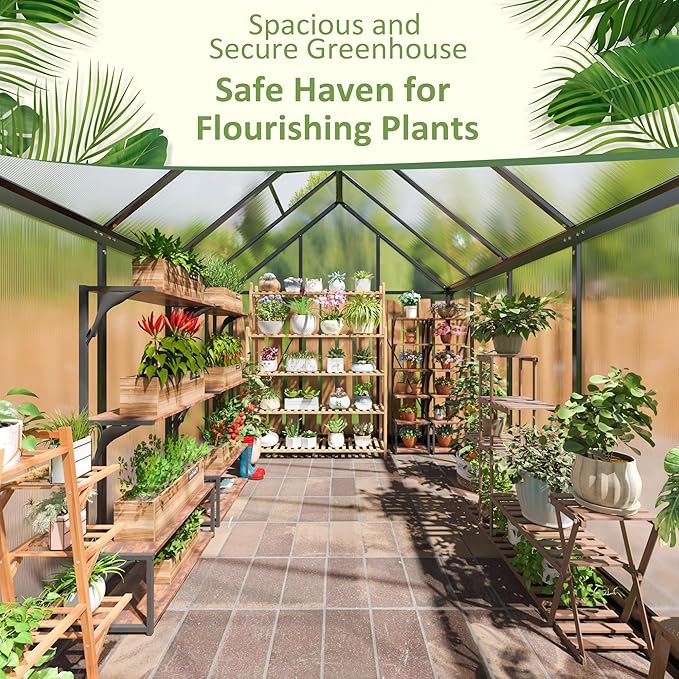 - 🏋【Strength That Endures】AirWire's green house is built with superior 720g polycarbonate panels and a reinforced aluminum frame for unmatched durability. Designed to weather the storms, it offers perennial protection for your flora, securing a resilient haven for year-round cultivation.
