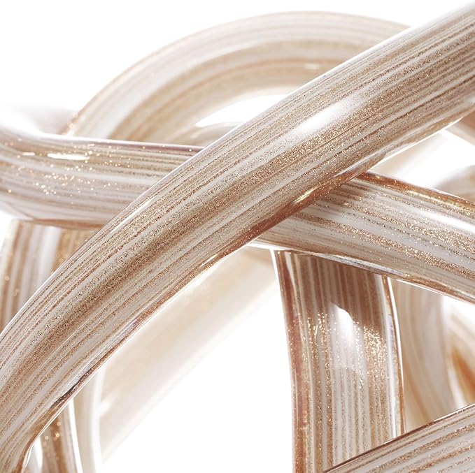 Luxury Lane Hand Blown Infinity Knot Sommerso Decorative Glass Ball for Bowls Home Decor 4 inch Tall Orbit Centerpiece Table Decoration Sculpture White Gold