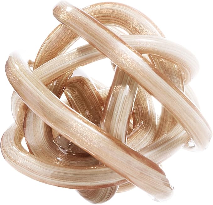 Luxury Lane Hand Blown Infinity Knot Sommerso Decorative Glass Ball for Bowls Home Decor 6 inch Tall Orbit Centerpiece Table Decoration Sculpture White Gold