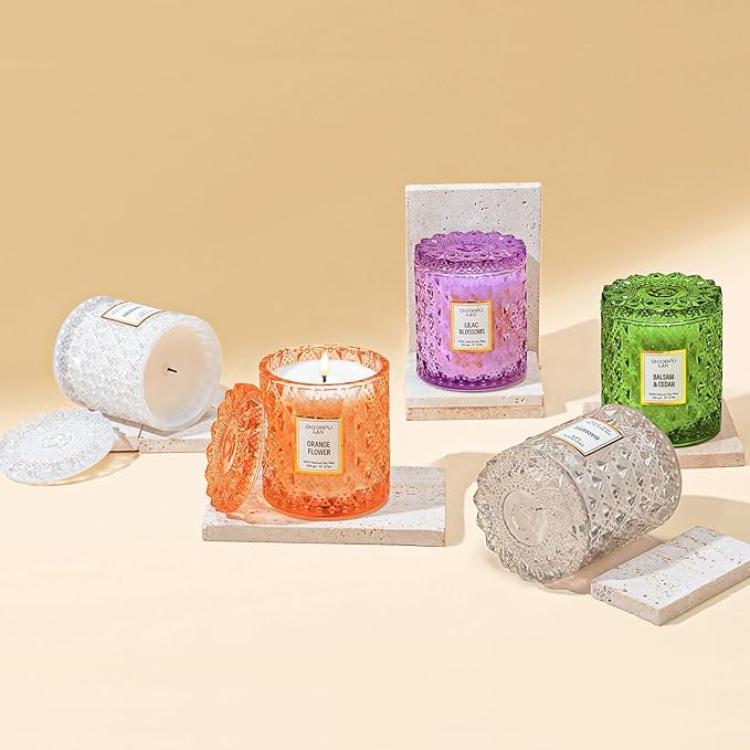 - Delicate Jar Design - Designed with delicate Lingge patterns carved on the glass jar to serve an ideal present to exchange greetings. Perfect gift for any occasions and unique candle jar can be used as a charming decorative storage container.
