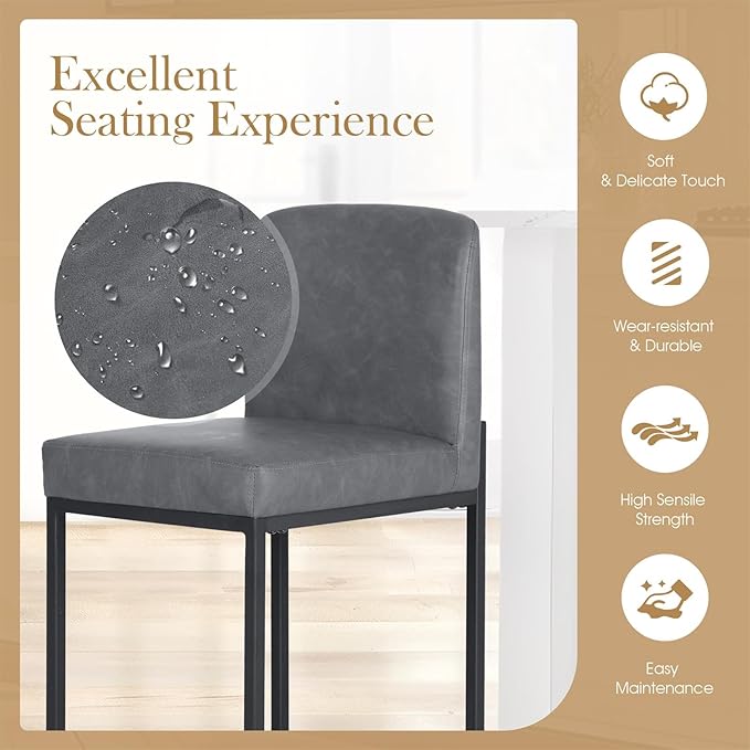 - 【Water & Stain Resistant】: With high-quality PU leather, water will not penetrate the sponge, will only stay on the surface. The water resistant feature made the barstools quite easy to care. Pu leather is more comfortable durable and breaths better than real leather and soft to the touch. Wipe with duster cloth in every day use in your dining room