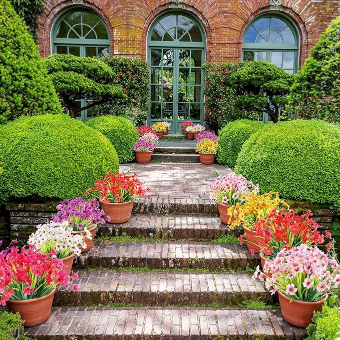 - 【Multifunctional decoration】 - designed for outdoor and indoor decoration. These lifelike artificial flowers add charming charm to your windowsill, front porch, walkway, garden, kitchen, living room, dining table, bedroom, terrace and garden fence. Artificial flowers are very suitable for daily family garden decoration, birthdays, festivals, weddings, memorial places, DIY projects, etc.