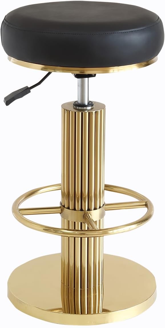 FUNROLUX Gold Bar Stools Adjustable Swivel Counter Stools Modern Backless Counter Height Bar Stools for Kitchen Island with Metal Legs and Upholstered Microfiber Leather (Black)