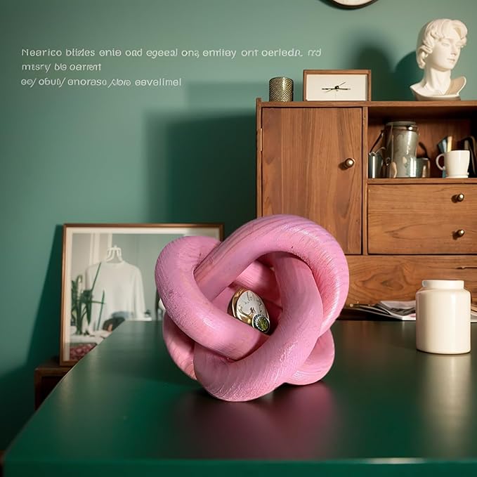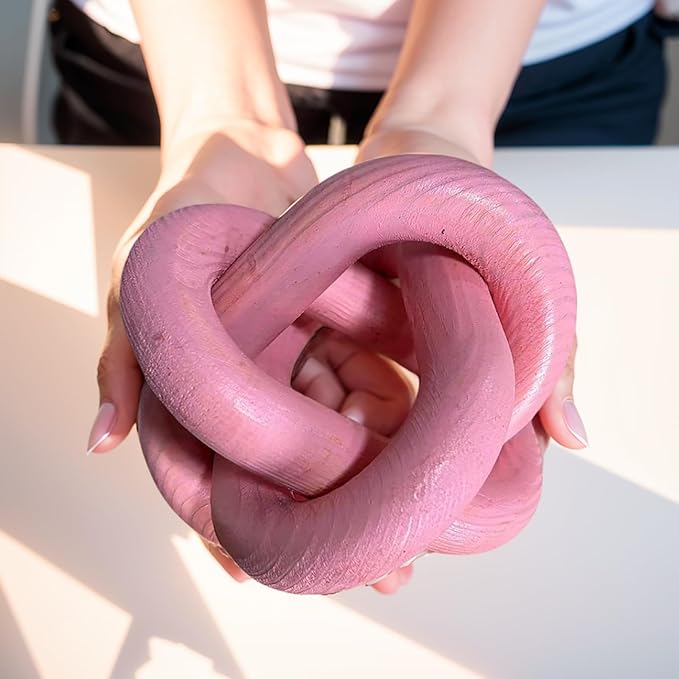 Wood Knot Decor -Coffee Table Decor Shelf Decor Table Books Hand Carved Home Decoration Boho Country Rustic Modern Shabby Chic Style Decor 3 Link Wooden Knot Chain Link Decor (Pink)