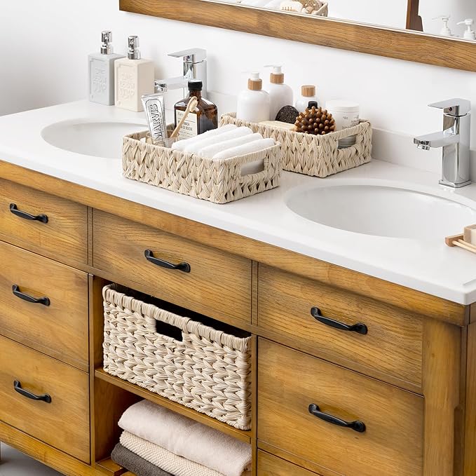 - Design for Convenience: Each rattan storage basket features 2 handles, convenient for transportation, ideal to use as storage baskets for organizing bathroom.