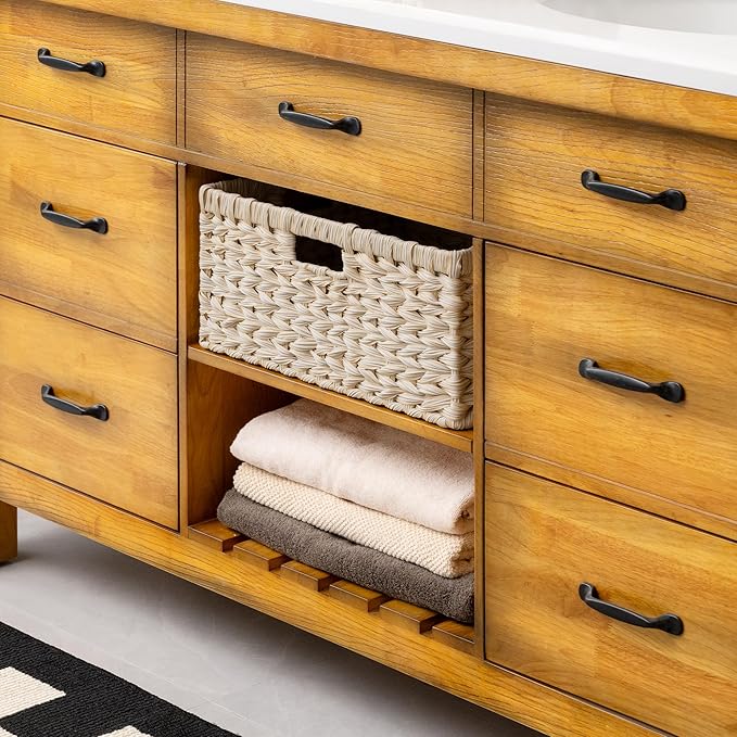 - Design for Convenience - Each rattan storage basket features 2 handles, convenient for transportation, ideal to use as storage baskets for organizing bathroom.