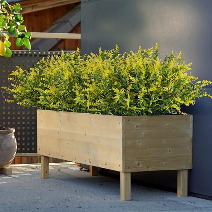 36 Bundles Artificial Plants Outdoor, Artificial Flowers for Outdoors Fake Flowers UV Resistant Flowers Lavender Outdoor Plants, Faux Flowers Shrubs for Porch Garden Window Box Home Decoration(Yellow)