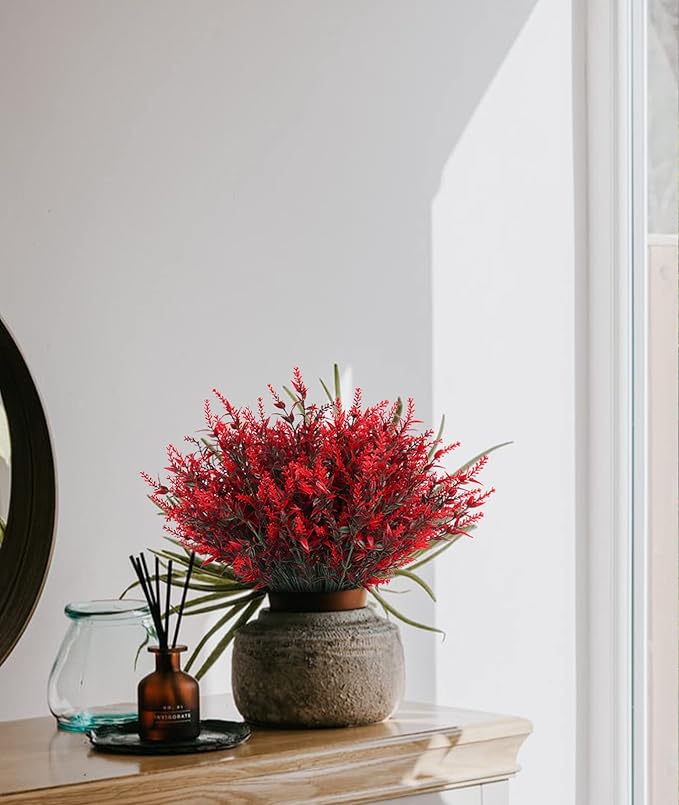 RECUTMS Spring Decoration, Artificial Greenery,36 Pcs Artificial Flowers Outdoors Fake Lavender Plants Indoor UV Resistant Plastic Faux Bouquets for Outdoor Home Garden Porch Decoration(Red)