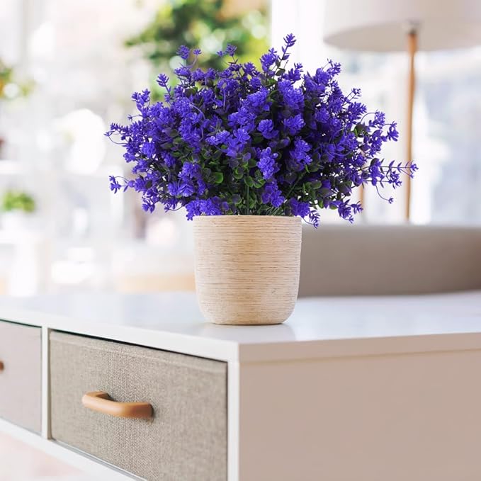 RECUTMS Fake Outdoor Flowers Artificial Flowers Plants for Window Boxes Spring Outdoor Home Decoration, 10 Bundles Fake Faux Eucalyptus for Outside Home Planter Porch Patio Window Yard Decor(Purple)