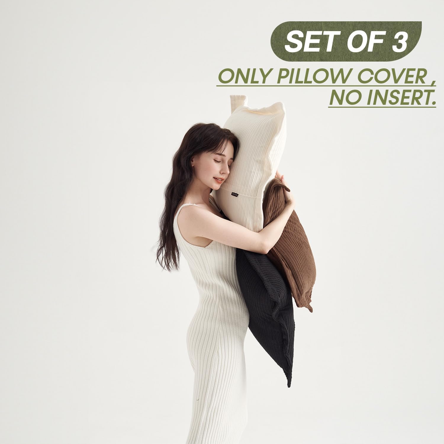 - COCO TOP: Elegantly hand-sewn, 18x18"corduroy pillow covers in a set of 3, featuring rich coffee, classic black, and crisp white hues with a nostalgic stripe design. (Covers only; no inserts included. Allow for a 2cm size variation.)"