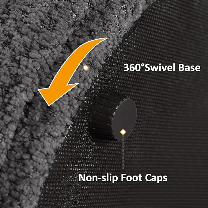 VANOMi Multi-Functional Boucle Ottoman, Vanity Stool Chair, Sturdy Rotating Wooden Footstool, Suitable for Living Room, Bedroom, and Entryway, Without Installation, Swivel, Dark Grey