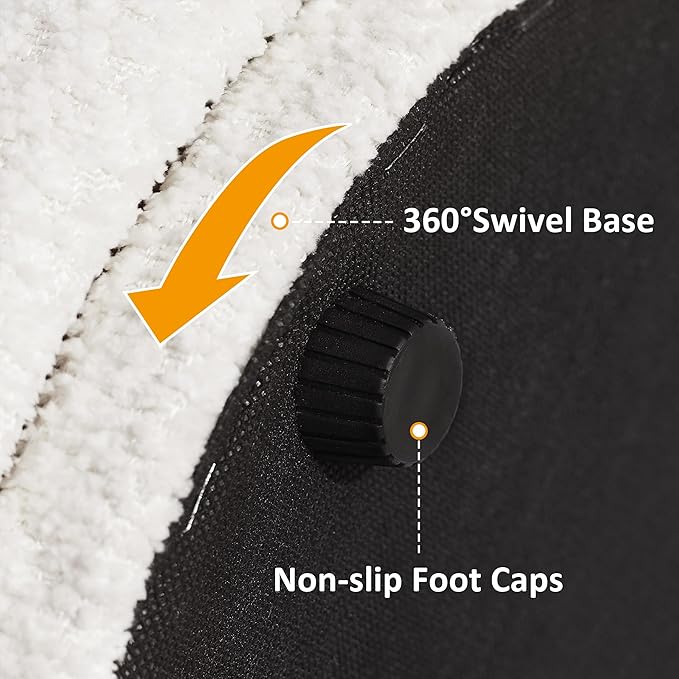 VANOMi Multi-Functional Boucle Ottoman, Vanity Stool Chair, Sturdy Rotating Wooden Footstool, Suitable for Living Room, Bedroom, and Entryway, Without Installation, Swivel, White