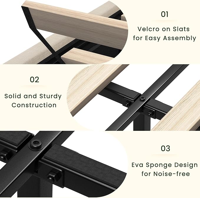 - 【Quick and Easy Assembly】 2 Packages in All, Set up your bed frame in approximately 30 minutes; The installation steps are clearly marked on the Instruction, all parts are clearly labeled for easy searching—no hassle, no stress; Please Note: mattresses is not included