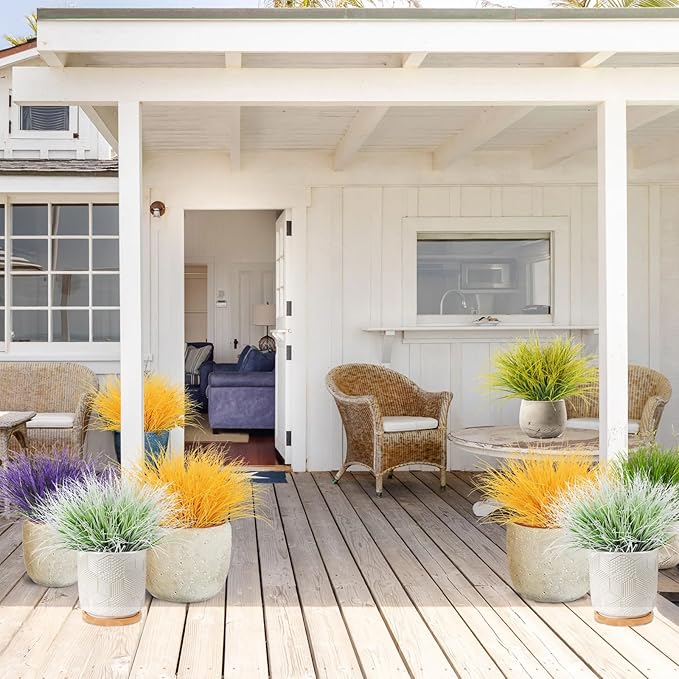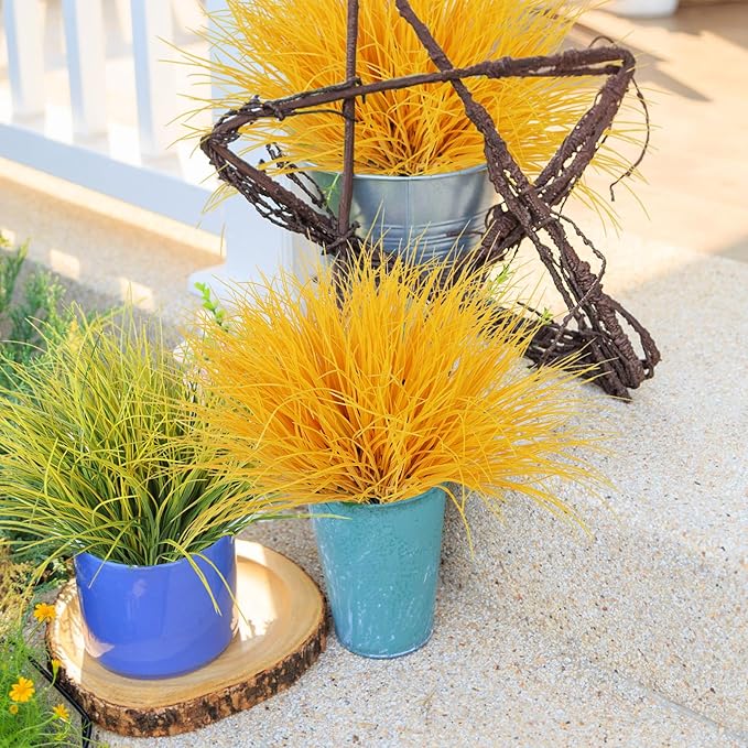- [Outdoor Spring Plant Decor]Autumn picks fake grass are suitable for decoration both indoors and outdoors,They add vibrant colors to your garden,office, courtyard, and doorway, and plastic grass plants are also perfect for decorating weddings, Halloween,parties, birthdays, holidays, and weddings.