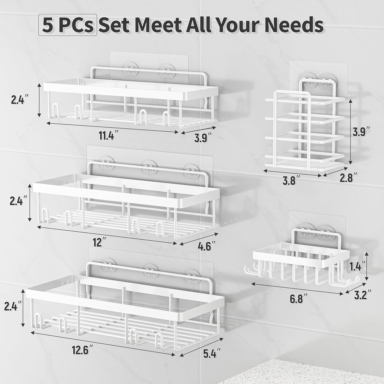 - 5 PCs Large Storage Shower Caddy: The bathroom shower organizer set comes with 3 wall shower caddies, 1 soap holders, 1 toothbrush holder and 5 adhesives. Liuoud Shower Shelves can store all of your bath supplies