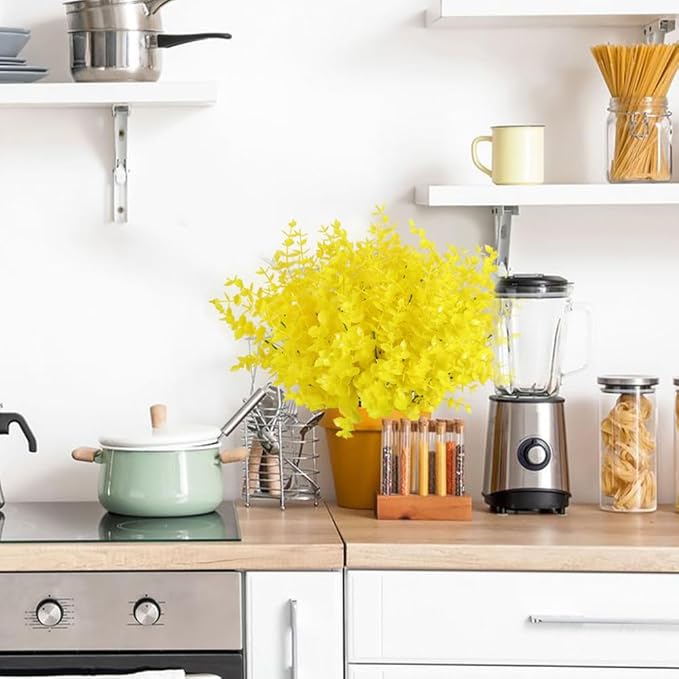 RECUTMS Artificial Flowers, Fake Outdoor UV Resistant Plants Faux Plastic Greenery Shrubs Indoor Outside Hanging Planter Home Kitchen Office Wedding, Garden Decor(Pure Yellow Eucalyptus)