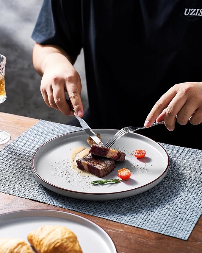 - 【FOOD GRADE NATURAL GLAZE】All of our dinnerware sets are made of food grade glaze. You can safely use them to serve steaks, salads or desserts, no need to worry about any harmful substances leaching into the food.