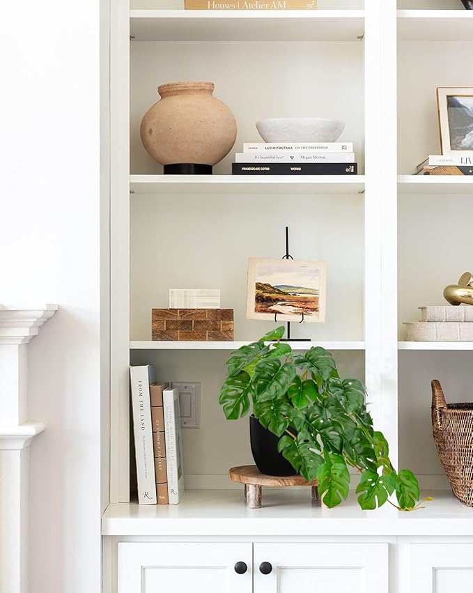 DILATATA Fake Plants Indoor 8 Inch Artificial Monstera Plant in Black Plastic Pot - Faux Potted Tropical Palm Plant for Home Aesthetic Decor Living Room Shelf Office