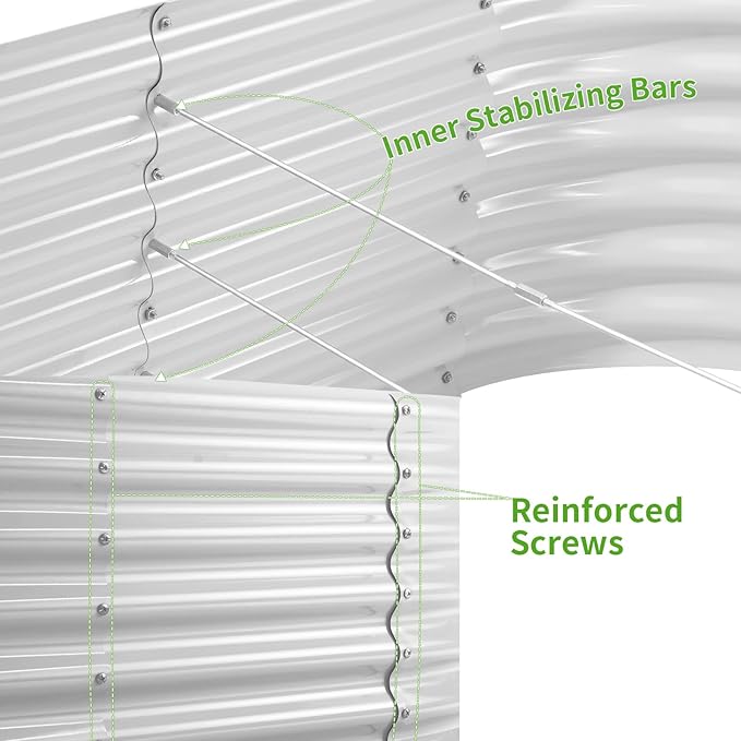 Land Guard 24“ Tall 4×2ft Galvanized Raised Garden Bed Kit, Galvanized Planter Garden Boxes Outdoor, Oval Large Metal Raised Garden Bed for Vegetables(Pearl White, 4×2×2ft)